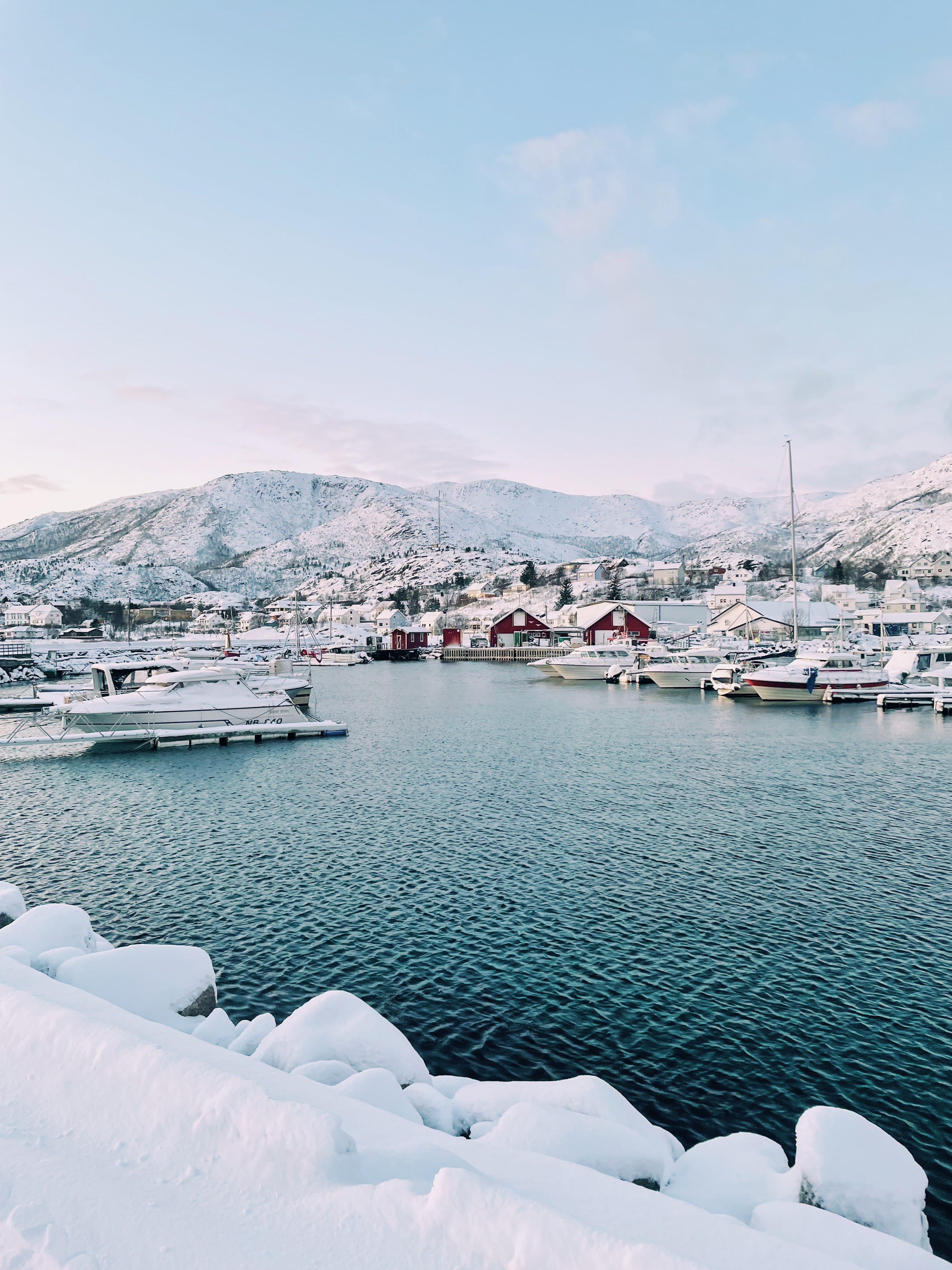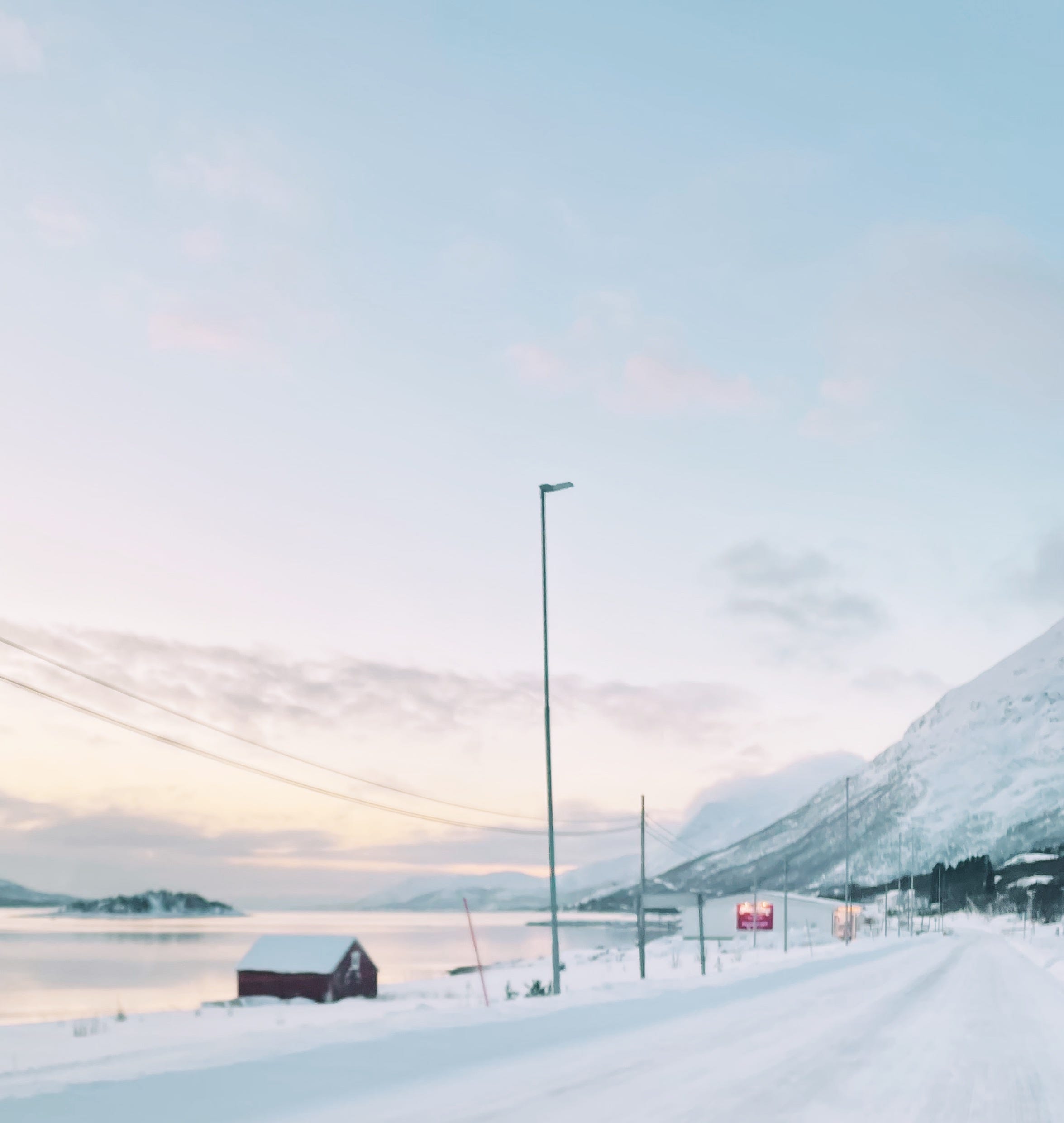 But: who needed to do anything, in a place like this? The best way to pass time here was to drive (carefully, slowly, with winter tyres), out of the city and into winter wonderland. We stopped for black filter coffee and a service station cinnamon bun and watched as a moose, long-legged and magnificent, ambled past our car. On a long summer day, you could easily drive from Narvik out to the Lofoten archipelago: with just a few hours of wintery twilight to play with, we could only get to the very beginning of it. We got as far as Lødingen, a picturesque fishing village whose red cabins seemed to glow under the pastel skies. We walked for hours, taking it in, not caring a bit about it being minus ten.